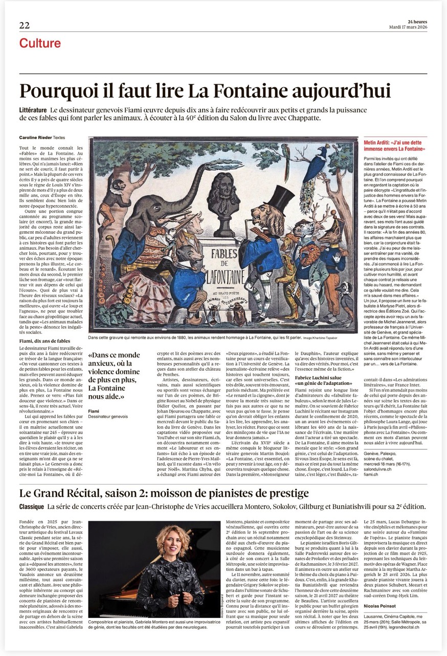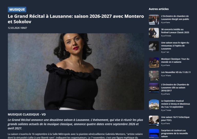 Le Grand Récital annonce une deuxième saison à Lausanne. L'événement, qui vise à réunir les plus grands solistes actuels de la musique classique, annonce quatre dates entre septembre 2026 et avril 2027.